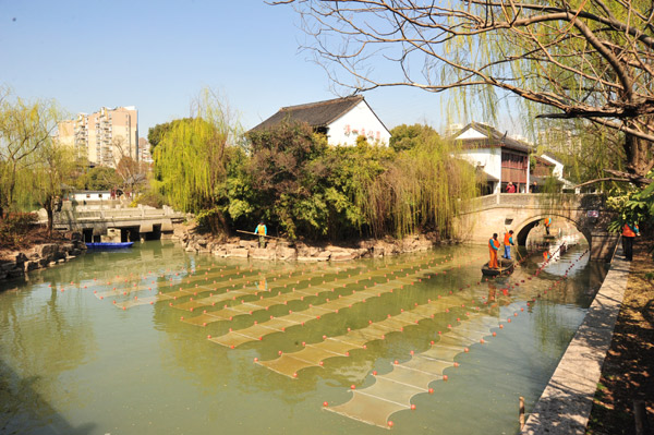 梁溪河是無錫市的母親河,是入太湖重要河道之一,實行省、市雙河長管理。在河長制公示牌上,清楚的寫著梁溪河的“身份信息”:起訖位置為京杭運河至梅梁湖、河道長度6.71公裏、河道級別為二級,水質目標為三級。同時標注了五級河長的姓名和單位。參加培訓的各級河長在現場考察時看到,河水上漂浮著幾排紅色小球竄起來的“漁網”——石墨烯光催化網,這是一張放在水裏的網,只要有可見光,它就可以分解水中的有毒物質,分解水制氧,讓水體恢復自凈能力。梁溪河治理是太湖流域片加快推行河長制的一個縮影。
