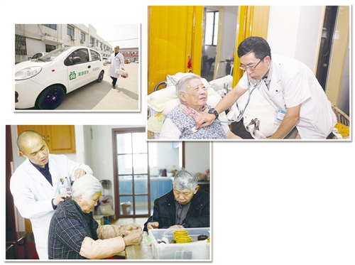 ② 閔行區古美社區衛生服務中心的家庭醫生到老人家裏出診。 劉 偉攝