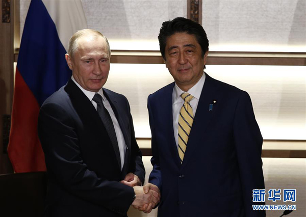 資料圖片:2016年12月15日,日本首相安倍晉三在其故鄉山口縣長門市與到訪的俄羅斯總統普京舉行會談。 新華社發
