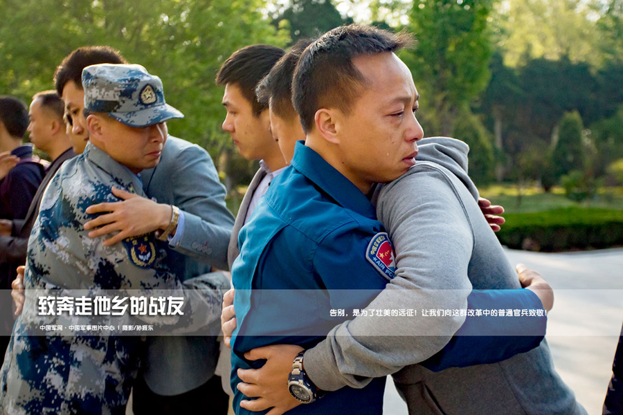 鐵血戰士多柔情,當數離別最傷心。北部戰區空軍某部分流前最後一次集合點名後,戰友相擁告別,他們將奔赴自己的下一個戰位。“戰友是天,戰友是地,有了戰友我們就能頂天立地!戰友是風,戰友是雨,有了戰友我們就能呼風喚雨!”鮮紅的條幅上,這兩句話分外顯眼,這也是戰友們的心聲……