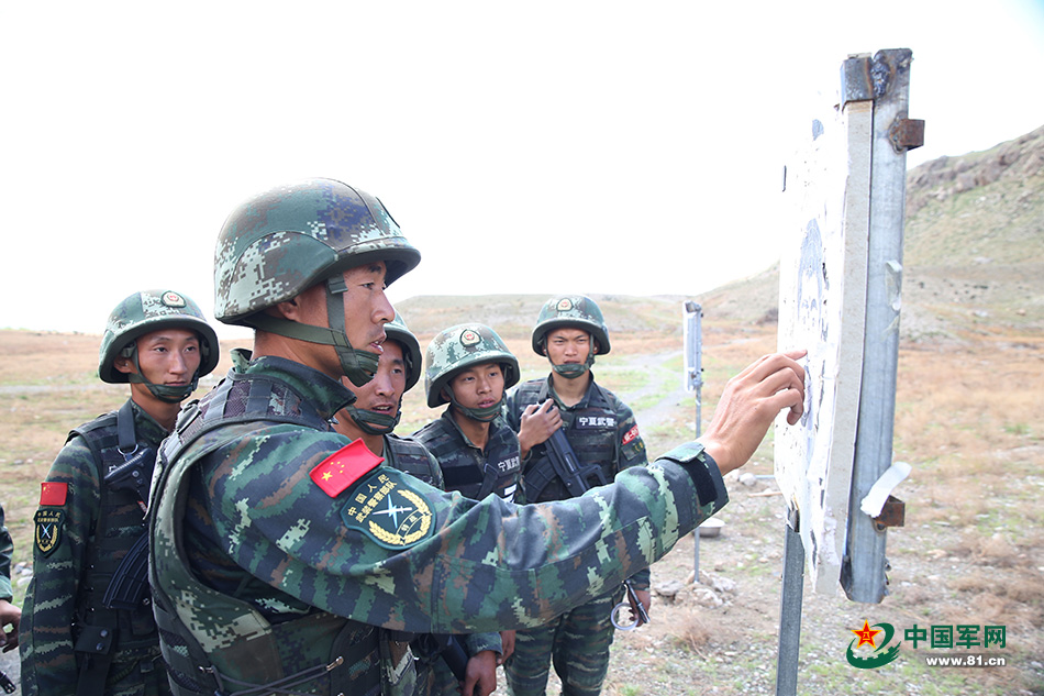 特戰隊員查看射擊成績。