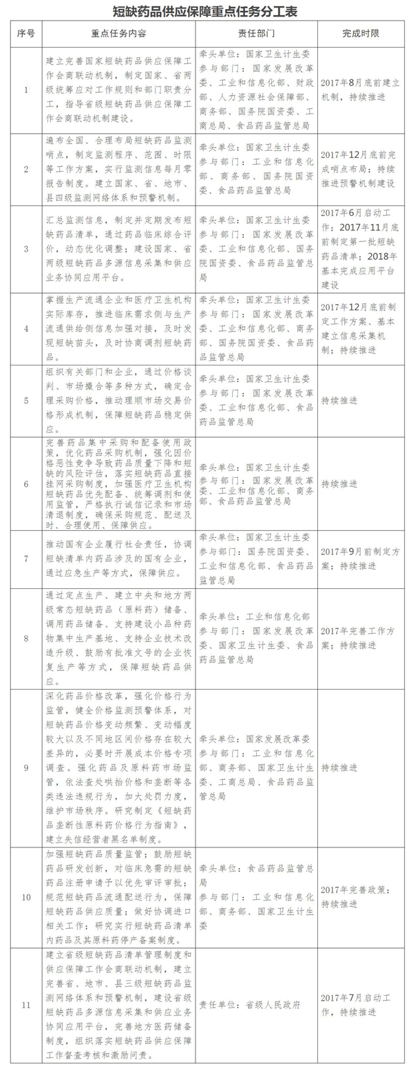 附件:短缺藥品供應保障重點任務分工表
