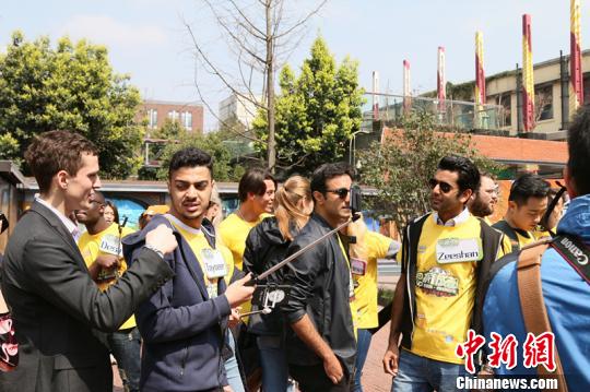 資料圖:網絡直播與綜藝節目結合在一起,嘉賓們人手一支自拍桿,一邊錄制一邊直播。鐘欣 攝