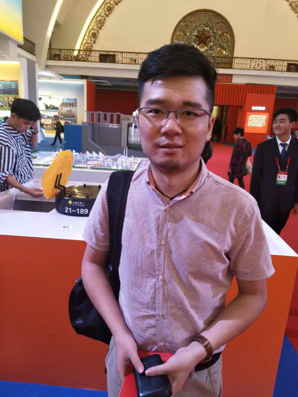 網龍網絡公司的商務總監周科在“砥礪奮進的五年”大型成就展現場 攝影/新華網 劉君