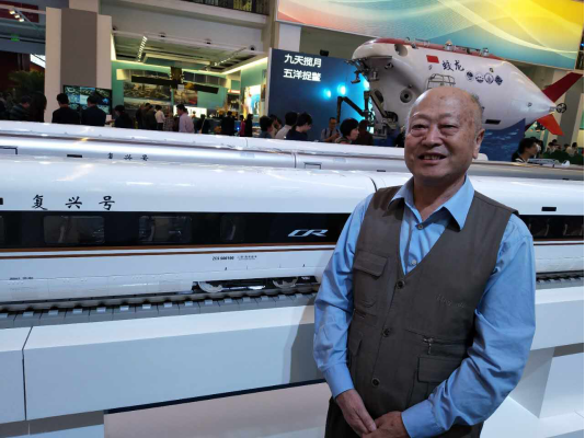 “復興號”高鐵組模型,位于“砥礪奮進的五年”大型成就展展廳的顯眼位置,這與高鐵在中國發展中的地位相適應。亮色調的設計,讓“復興號”高鐵組模型吸引了很多目光。記者在現場採訪的第二個參觀者,是81歲的退休鐵路工人張玉祥。他站在“復興號”高鐵組模型前,高興地説,“沒想到火車能跑這麼快,沒想到國家變得這麼富強。”他説,“我1994年退休的時候,聽説火車設計時速,也許能達到200多公裏,覺得不可思議,現在跑300公裏,都很平常了。”展覽現場的“東方紅—LW4004”400馬力重型拖拉機、“天眼”、“蛟龍”等反映中國科技成果的模型也同樣受到矚目。