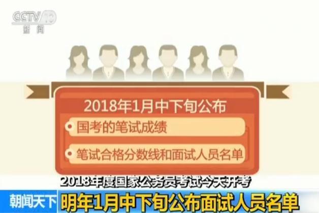 根據國家公務員局提供的時間表,2018年1月中下旬,此次國考的筆試成績將會公布,同時公布的還有筆試合格分數線和面試人員名單。2018年3月中旬前將開展面試工作。