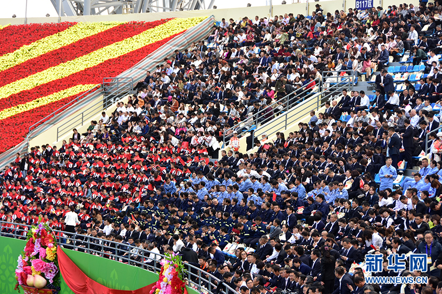 9月20日下午,寧夏回族自治區成立60周年慶祝大會將在賀蘭山體育場舉行。圖為現場觀眾。新華網 于晶 攝