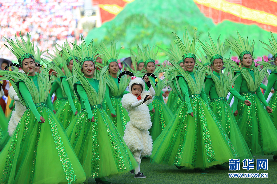 9月20日下午,寧夏回族自治區成立60周年慶祝大會在賀蘭山體育場舉行。圖為吳忠市方隊上場。新華網 張潔龍 攝