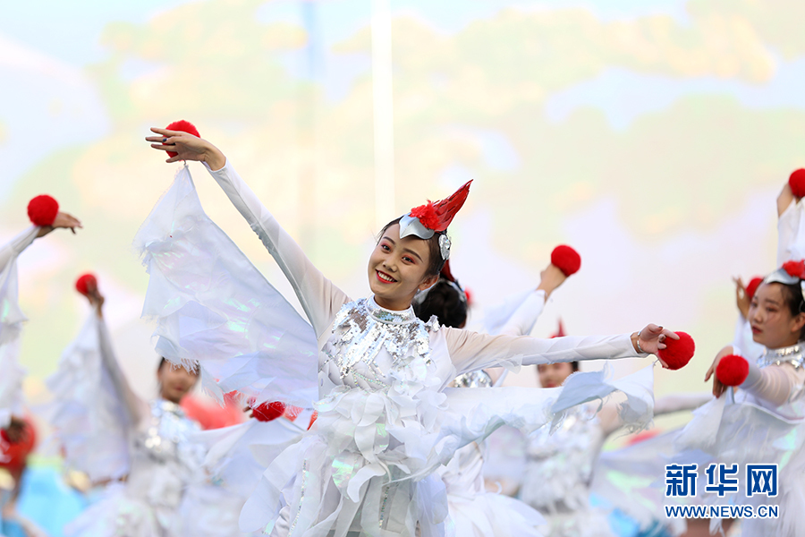 9月20日下午,寧夏回族自治區成立60周年慶祝大會在賀蘭山體育場舉行。圖為《塞上江南·美麗寧夏》主題表演。新華網 張潔龍 攝
