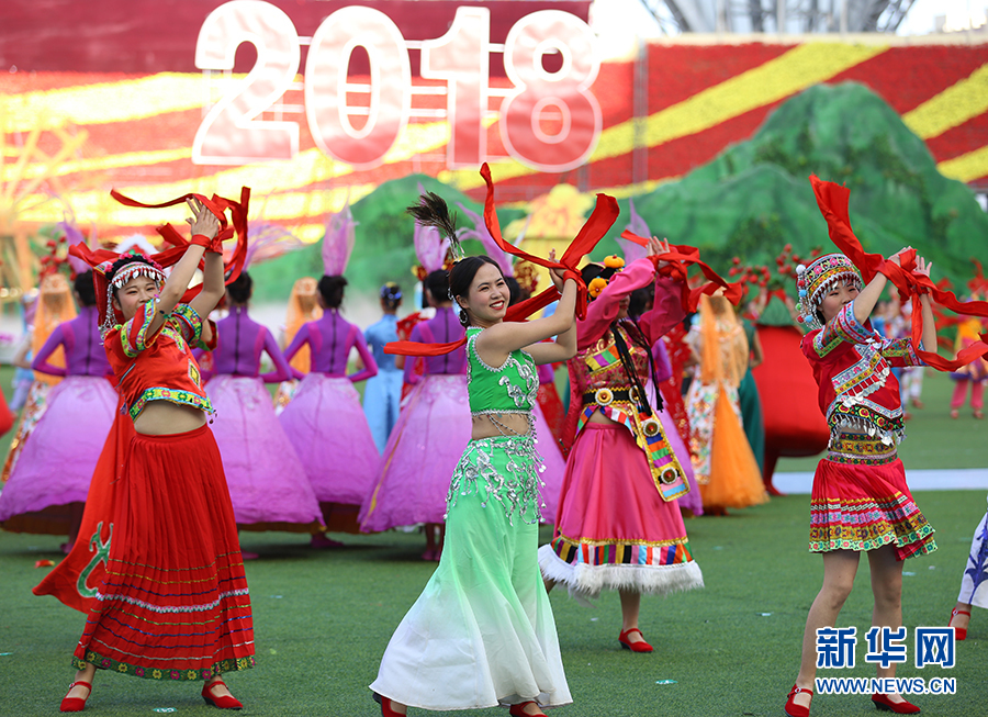 9月20日下午,寧夏回族自治區成立60周年慶祝大會在賀蘭山體育場舉行。圖為尾聲表演《歌唱祖國》。新華網 張潔龍 攝