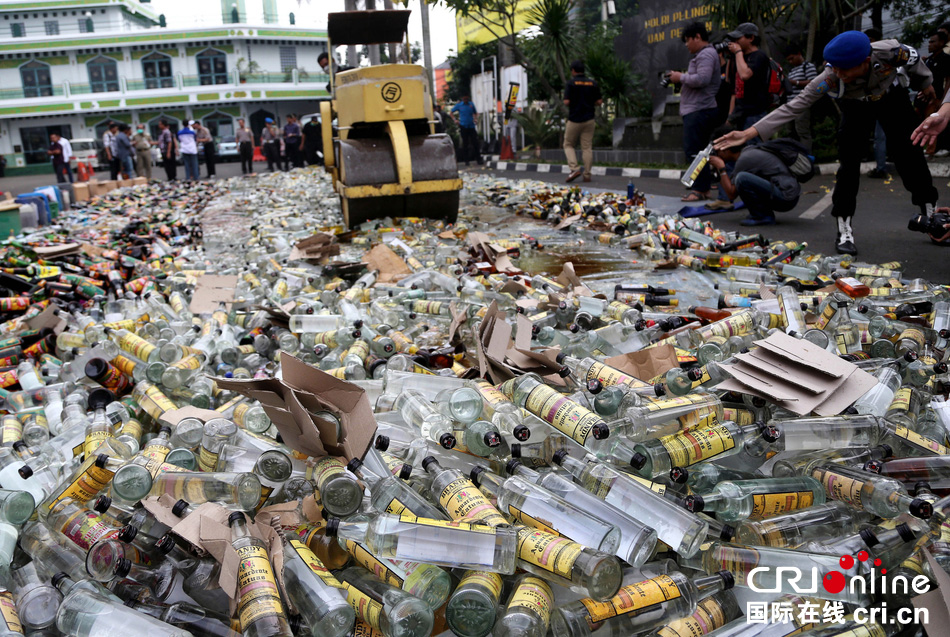 印尼警方銷毀數萬酒瓶迎接齋月【高清組圖】