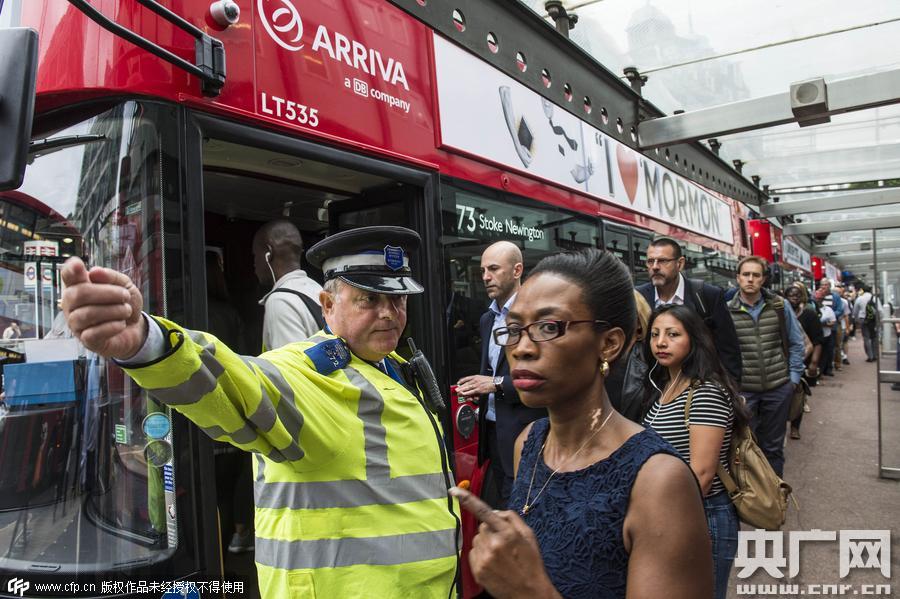 當地時間2015年8月6日,英國倫敦,英國地鐵職工大罷工持續進行,造成居民出行不便。
