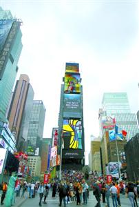 9月22日,美國紐約時報廣場大屏幕上正在播放展示中美文化交流的視頻。新華社發