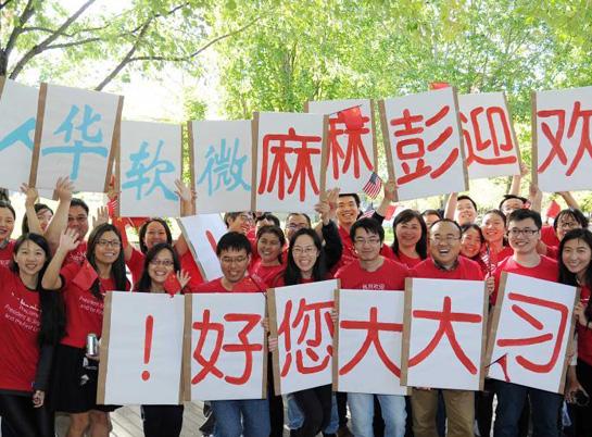 習主席和夫人彭麗媛來訪時,數百名微軟員工夾道歡迎,其中包括百余名外籍員工和近三百名華人“粉絲團”,他們穿著專門制作的T恤、高舉中英雙語橫幅和標語。