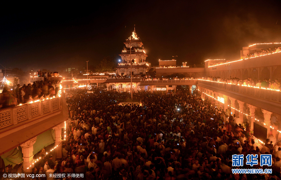 當地時間2015年11月25日,印度納迪亞德,Santram寺廟燈火通明慶祝' Dev Diwali ' 節日。
