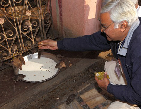 遊客們給老鼠投喂的食物也被視作神聖之物。即使那些食物有可能已經被老鼠咬過,虔誠的信徒們也會毫不介意地吃下去。