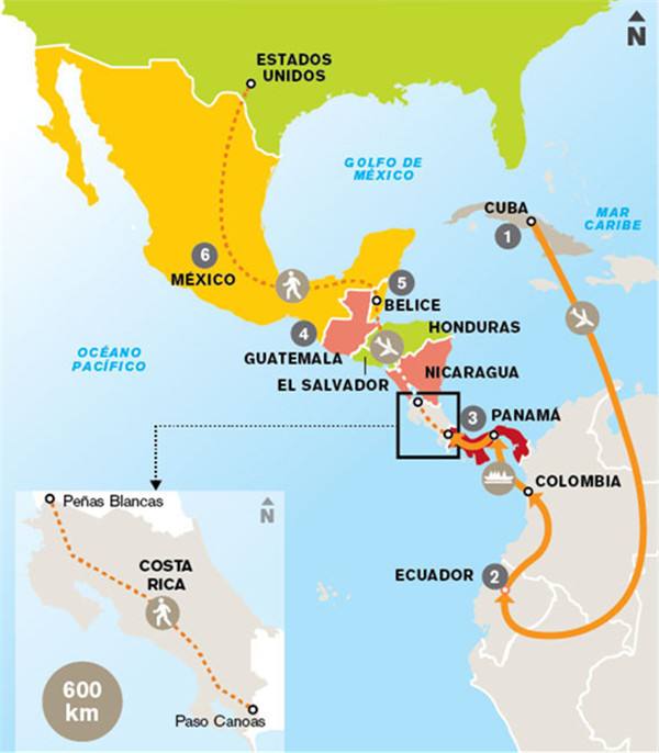 他們先是飛往美洲大陸上唯一對其免簽的厄瓜多爾,然後一路向北,企盼穿越哥倫比亞和中美洲七國的熱帶叢林,從墨西哥踏入美國得克薩斯州,搖身變成美國居民。