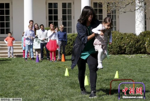 而今年的主題是“讓我們一起慶祝”,並且增加了趣味跑步“fun run”,孩子們跟著第一夫人米歇爾沿著白宮跑步。