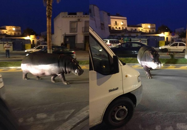 西班牙民眾在街頭拍下活生生的大河馬,上傳網絡後引起許多關注,原來這只河馬是從附近的馬戲團逃脫享受自由,不久後就被帶回。雖然看到河馬逛大街很稀奇,不過許多人還是希望河馬在原棲地,而不是在馬戲團賣藝。