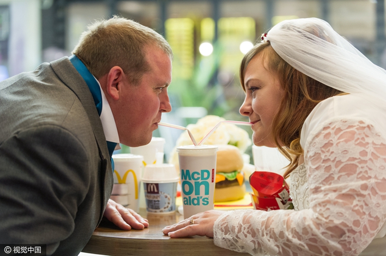 英國現“快餐粉”夫妻 麥當勞內辦婚禮(組圖)