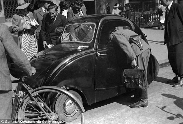 雖然很多車型設計看來並不適應這個地球,但是它們的技術積累為現在奔馳在道路上的電動車鋪平了道路。圖為一名德國士兵在巴黎的街道上檢查一輛電動車。