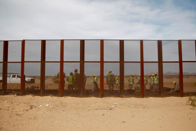 2017年2月10日,在墨西哥索諾拉沙漠,美方人員在邊境墻邊修路。(新華社記者淡航攝)