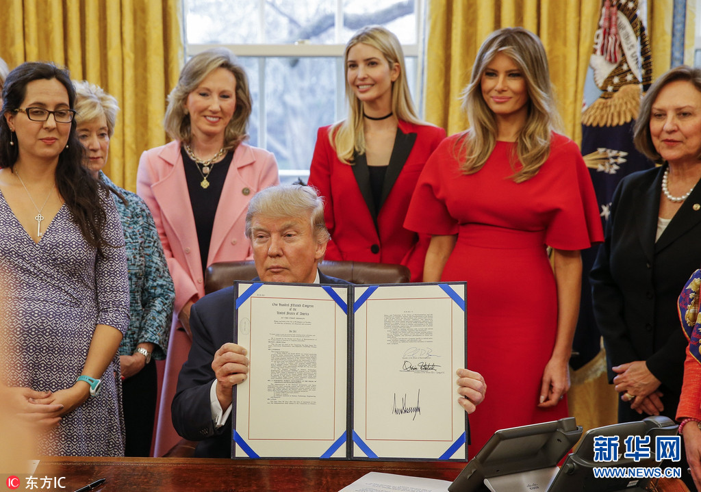 特朗普簽署促進女性就業法案 伊萬卡紅套裝時尚亮相(組圖)