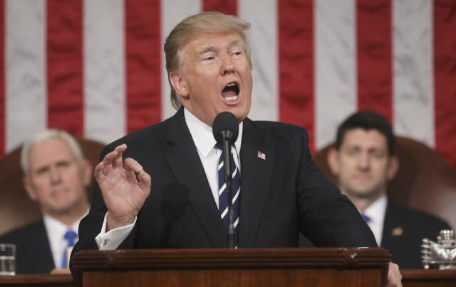 2月28日,特朗普在華盛頓國會山發表演講。(新華/路透)