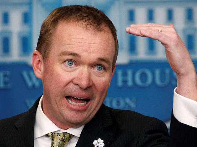 3月16日,美國白宮行政管理和預算局局長米克·馬爾瓦尼在新聞會上發表講話。(新華/路透)