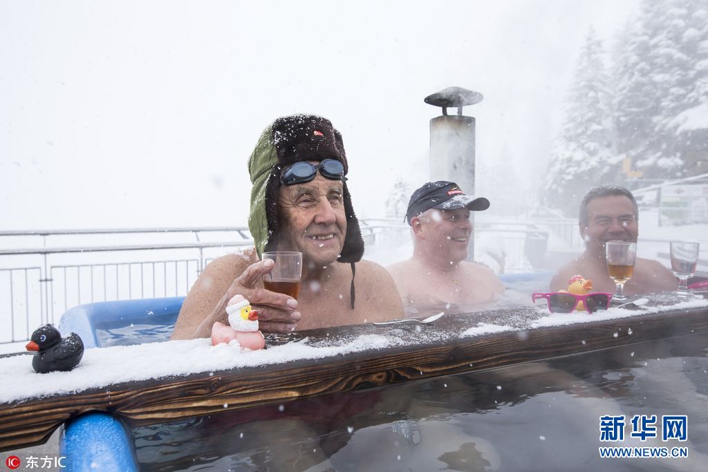 冰火兩重天!瑞士大爺冰天雪地裏泡熱湯(組圖)