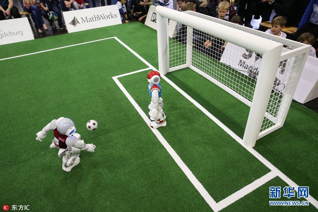 當地時間2017年5月7日,德國馬格德堡,2017機器人世界杯德國公開賽舉行。來自15個國家、約200支隊伍、超過1000人參加比賽,展示足球、救援和服務機器人等。(圖片來源:東方IC)