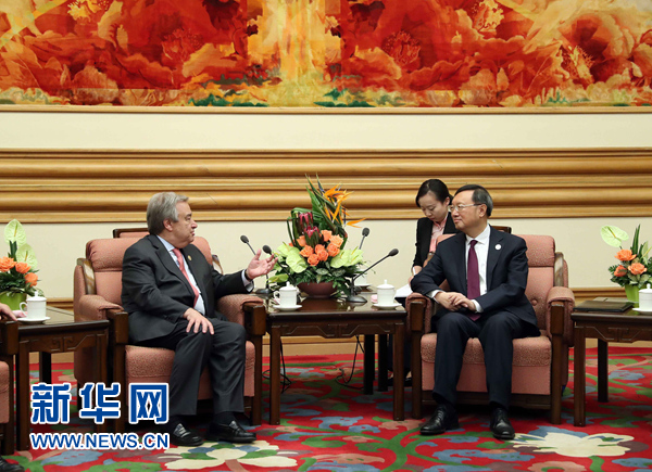 5月15日,國務委員楊潔篪在北京會見來華出席“一帶一路”國際合作高峰論壇的聯合國秘書長古特雷斯。 新華社記者劉衛兵攝