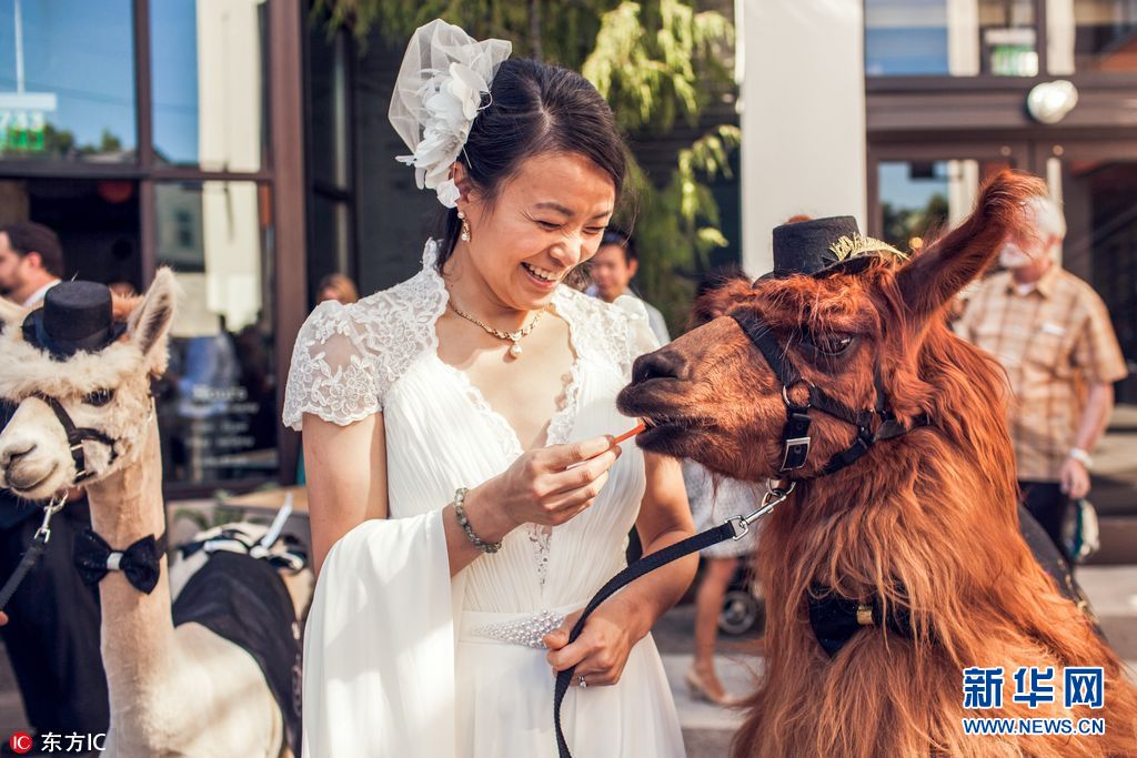 2017年5月22日報道(具體拍攝時間不詳),大多數人都不喜歡自己的婚禮被別人搶鏡,但是這些新娘們似乎並沒有這樣的擔心,因為她們請來了羊駝來參加自己的婚禮。這些好玩的照片顯示,新郎和新娘在他們的婚禮上,迫不及待地抓住一切機會與羊駝們一起合影,留下有意思的婚禮照片。