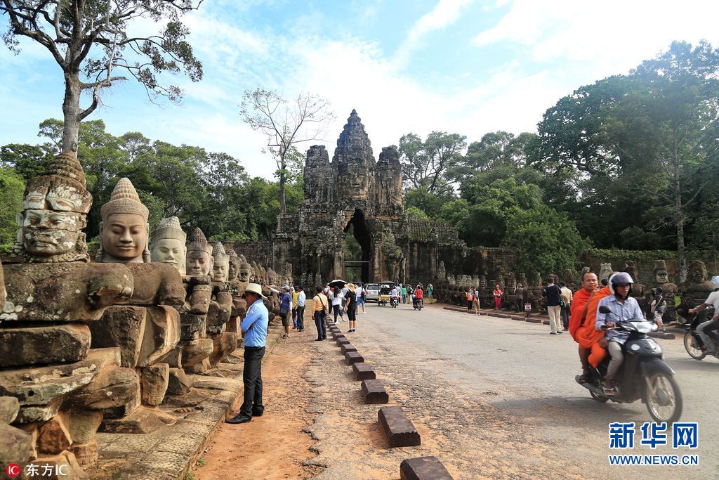 2016年08月17日,柬埔寨吳哥窟。每年,吳哥窟以其獨有的文化魅力引世界各地遊人競相前來領略。圖為進入吳哥窟前必經的通王城。(圖片來源: 嚴志宏/東方IC)