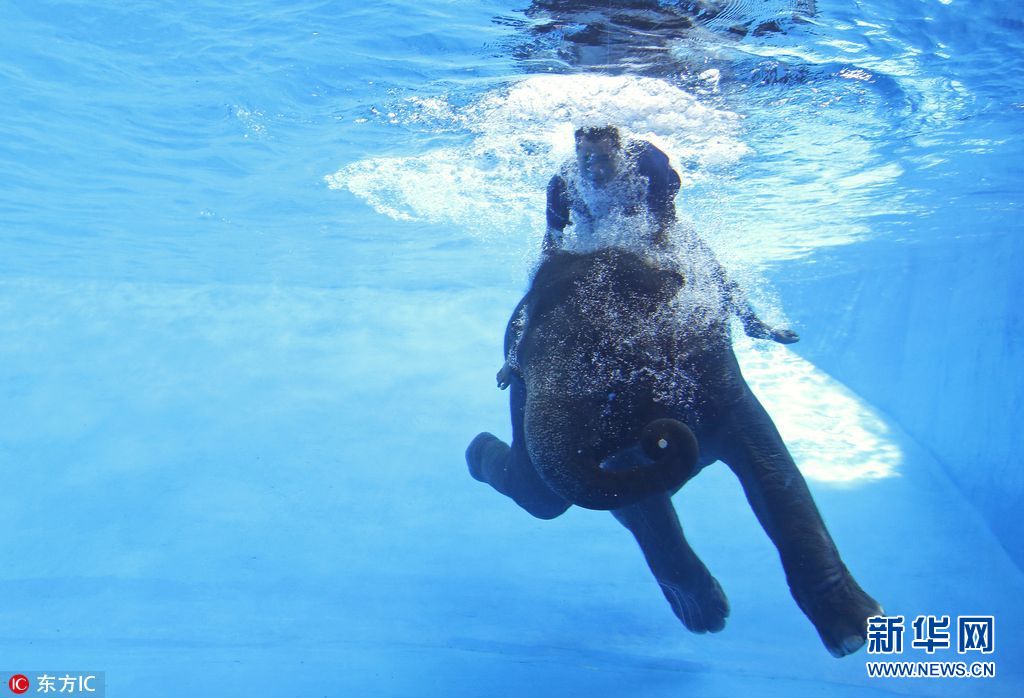 泰國大象化身泳壇“健將” 與象夫玩潛水(組圖)