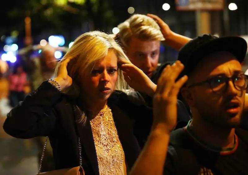 6月3日,在英國倫敦,人們離開事發現場。據英國媒體報道,一輛汽車3日晚在倫敦塔橋附近衝入人群。倫敦警方表示正在處理這一事件,目前人員傷亡情況不詳。據英國媒體報道,一輛汽車3日晚在倫敦塔橋附近衝入人群。2017-06-04 07:24:09