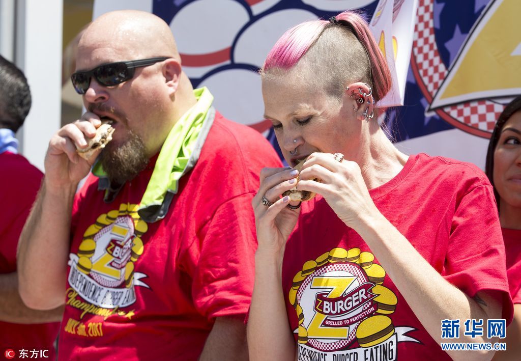 美國舉辦吃漢堡冠軍賽 世界第一“大胃王”竟是纖細弱女子(組圖)