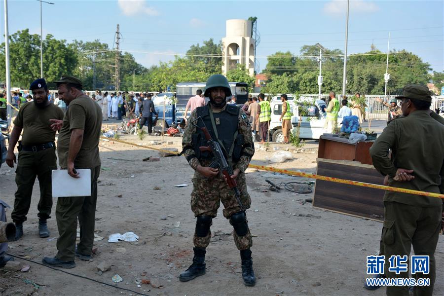 7月24日,在巴基斯坦拉合爾,士兵在襲擊事件現場執勤。巴基斯坦旁遮普省衛生部長拉菲克24日説,當天下午發生在該省首府拉合爾的自殺式炸彈襲擊事件已造成26人死亡、49人受傷,死者中包括9名警察。新華社發(薩賈德 攝)