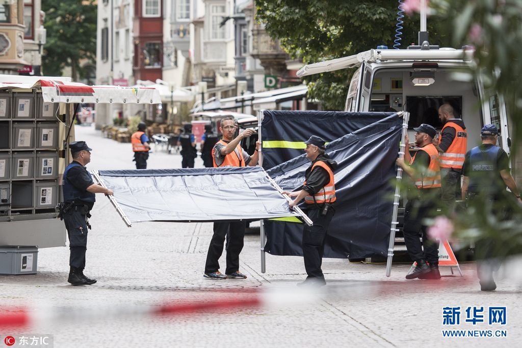 當地時間2017年7月24日,瑞士城鎮沙夫豪森鎮(Schaffhausen),一名手持電鋸的男子在瑞士沙夫豪森鎮發動襲擊。警方稱,襲擊造成5人受傷,其中2人傷勢嚴重。警方封鎖中心城區,搜捕一名男性嫌犯。(圖片來源: 東方IC)
