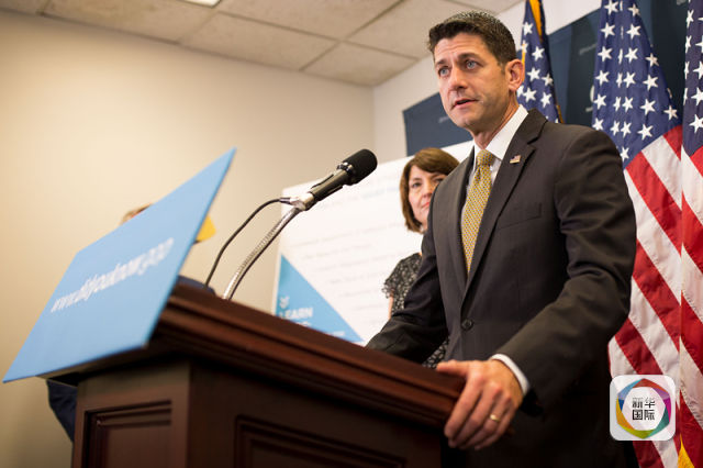 2017年7月25日,在美國華盛頓國會山,美眾議院通過對俄伊朝三國制裁議案後,美國國會眾議院議長瑞安出席記者會。