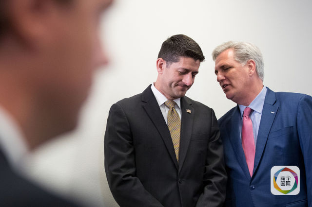 2017年7月25日,在美國華盛頓國會山,美國國會眾議院議長瑞安(右二)出席記者會。