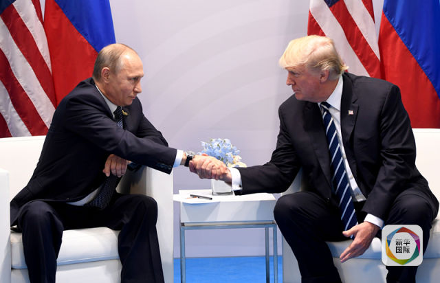 2017年7月7日,在德國漢堡,美國總統特朗普與俄羅斯總統普京在會晤時握手。