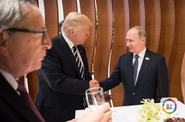 2017年7月7日,在德國漢堡,俄羅斯總統普京、美國總統特朗普與歐盟委員會主席容克出席G20峰會。