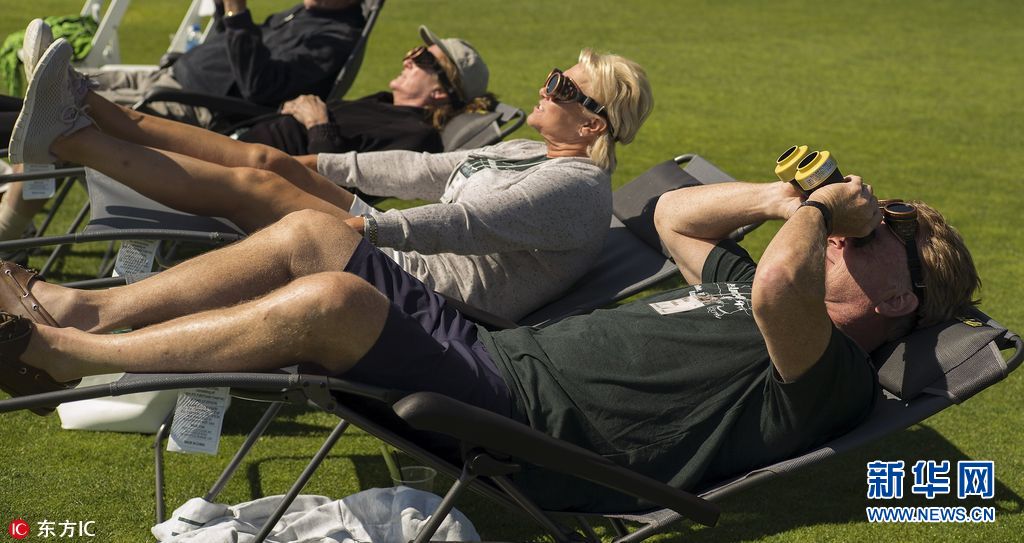 當地時間2017年8月21日,美國民眾觀看超級日全食。(圖片來源:東方IC)