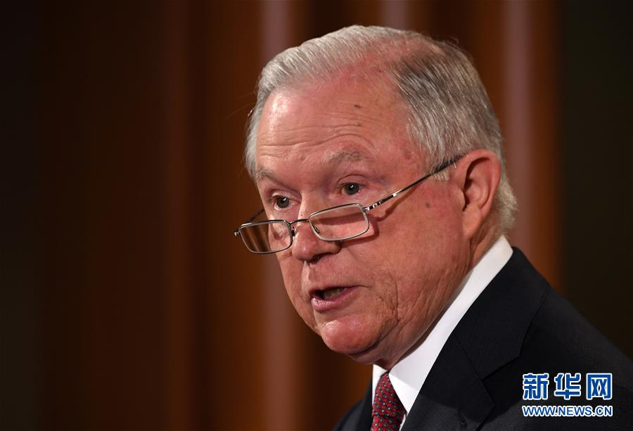 9月5日,美國司法部長塞申斯在華盛頓舉行記者會。美國總統特朗普5日下令廢除前任政府通過行政令推行的“童年抵美者暫緩遣返”計劃。廢除令暫緩6個月執行,以便國會尋求替代政策。“童年抵美者暫緩遣返”計劃2012年由時任美國總統奧巴馬簽署實施,此舉使年幼時被父母帶入美國的青少年非法移民可以免于被遣返,並能合法獲得工作。這部分人被稱為“夢想者”,據統計約有80萬人,大部分來自墨西哥和其他拉丁美洲國家。新華社記者 殷博古 攝