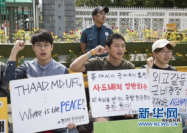 資料圖:8月29日,在韓國首爾,民眾手舉反對部署“薩德”的標語抗議示威。新華社發(李相浩攝)