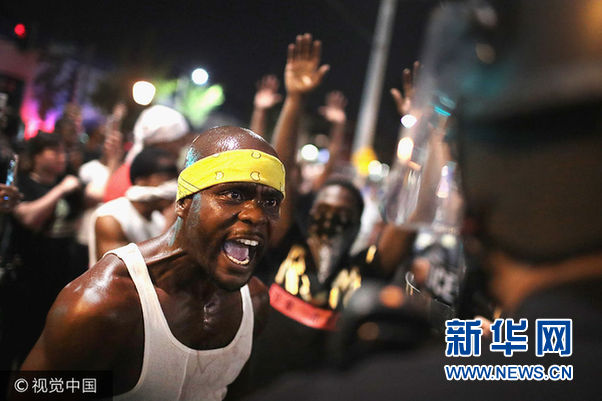 由于槍殺黑人的警察被判無罪,美國密蘇裏州聖路易斯市16日晚發生暴力抗議活動。(圖片來源:視覺中國)