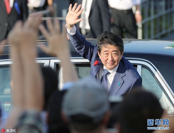 資料圖:當地時間2017年10與11日,日本愛知縣安城市,日本首相安倍晉三現身當地參加競選活動,發表演講為大選拉票。日本將于10月22日舉行眾議院大選。(圖片來源: 東方IC)