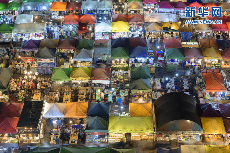 俯拍曼谷夜市色彩鮮艷如巨型棉毯 (組圖)