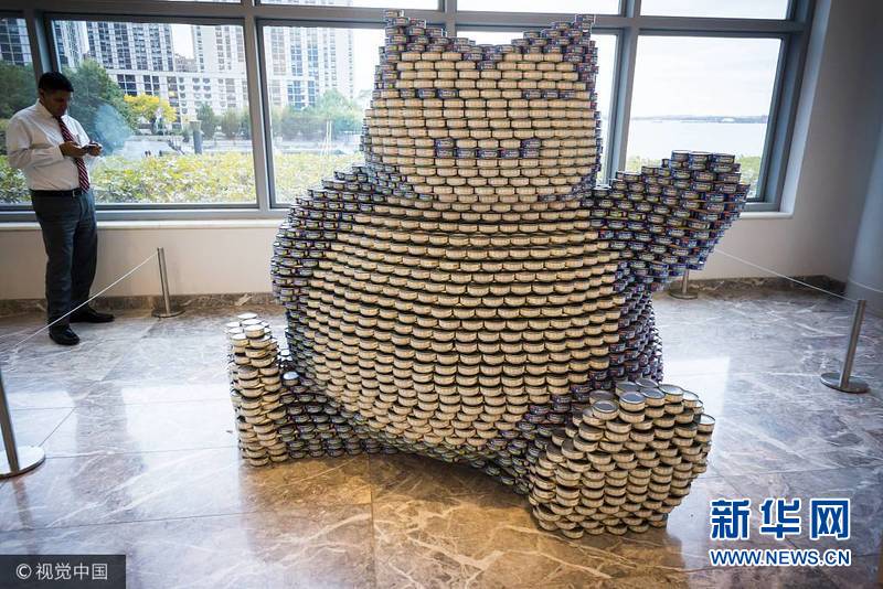 當地時間2017年11月7日,美國紐約,第25屆國際罐頭創意雕塑設計大賽的優勝作品在美國紐約展出。此次展覽結束後,這些作品將被拆除,所有的罐頭都將被捐給慈善機構“城市收獲”,用來援助仍在忍受饑餓的人。(圖片來源:視覺中國)